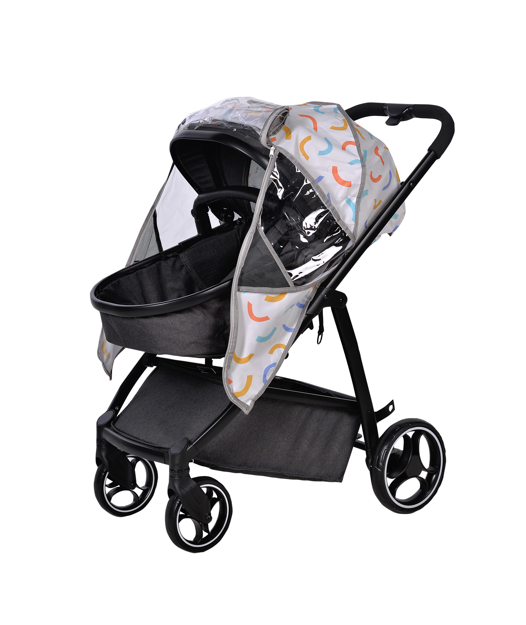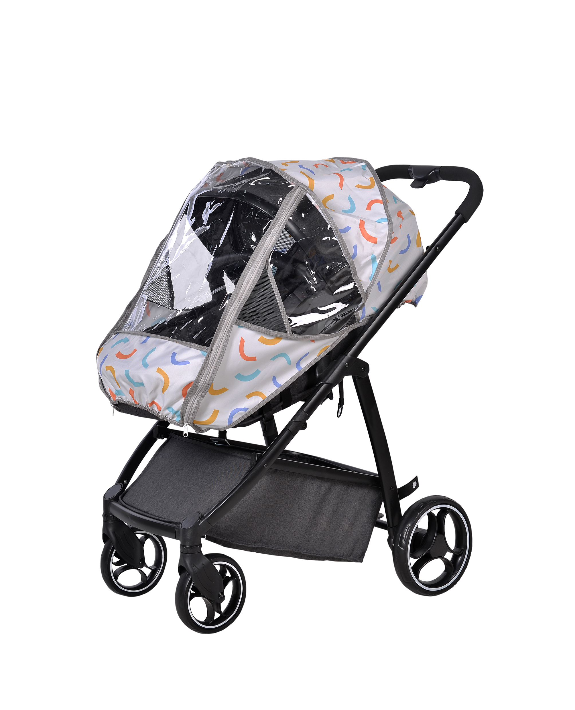 - Kenarlarındaki lastikleri sayesinde bebek arabasını tamamen sarar.